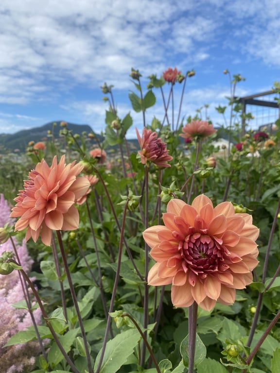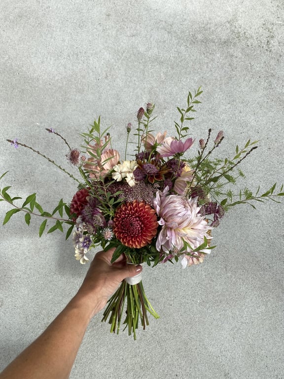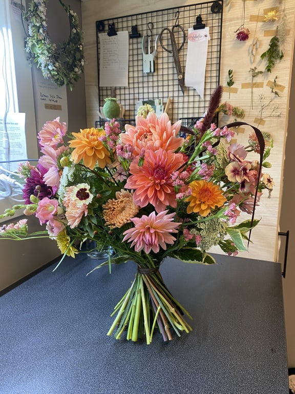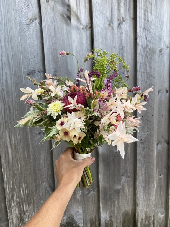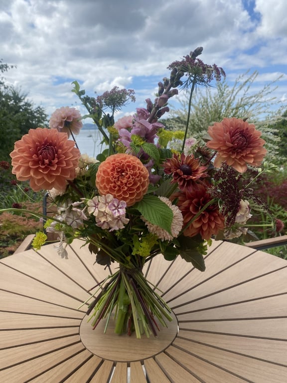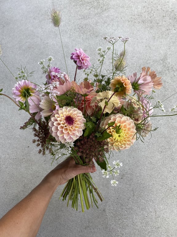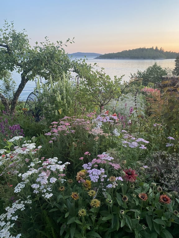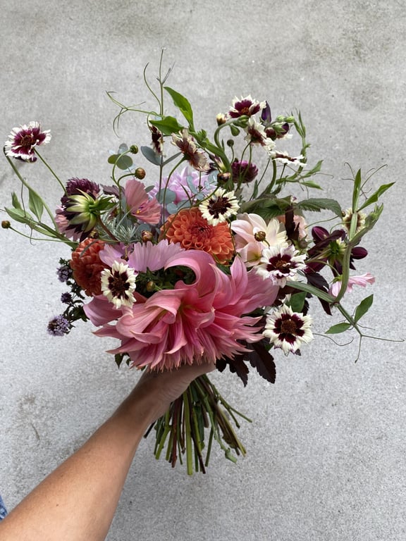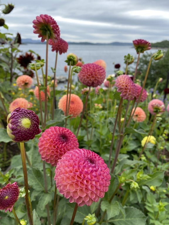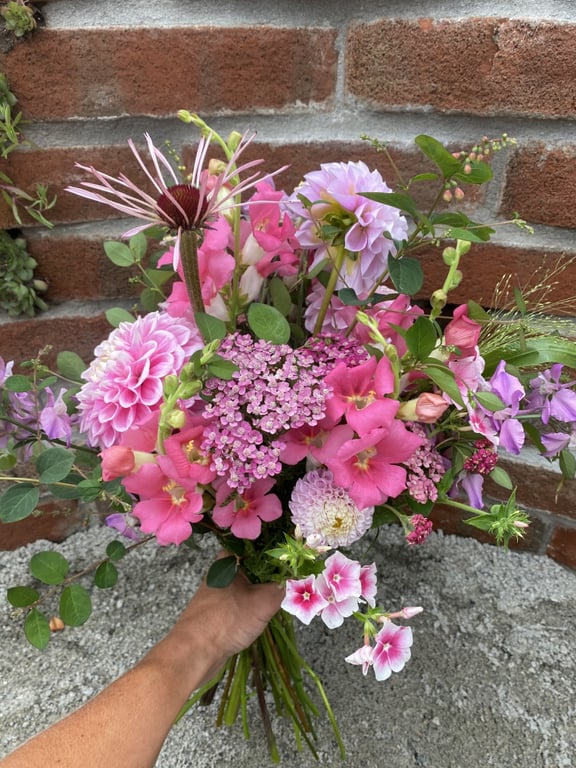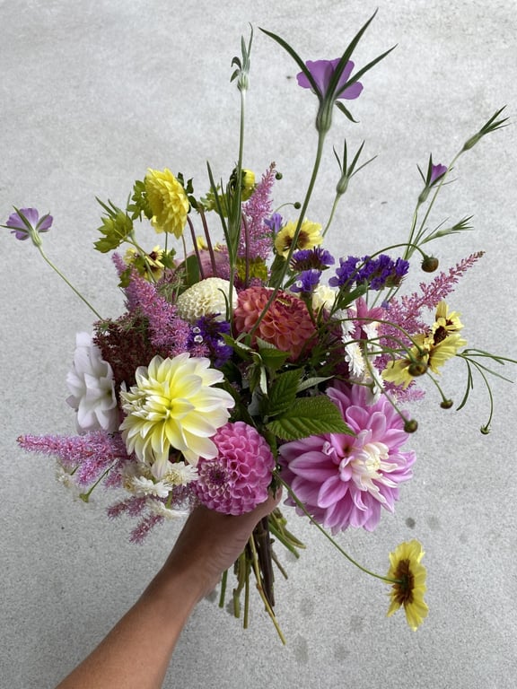 Hos oss kan du kjøpe egendyrka, sprøytefrie sesongblomster. Blomstene kommer fra hagen vår ved sjøen og de er dyrket frem med stor GLEDE. I april begynner tulipanene. Deretter overtar ranunkler, anemoner og peoner sammen med andre tidlige stauder. Til slutt kommer årets høydepunkt med dahliaene og et stort utvalg sommerblomster.
